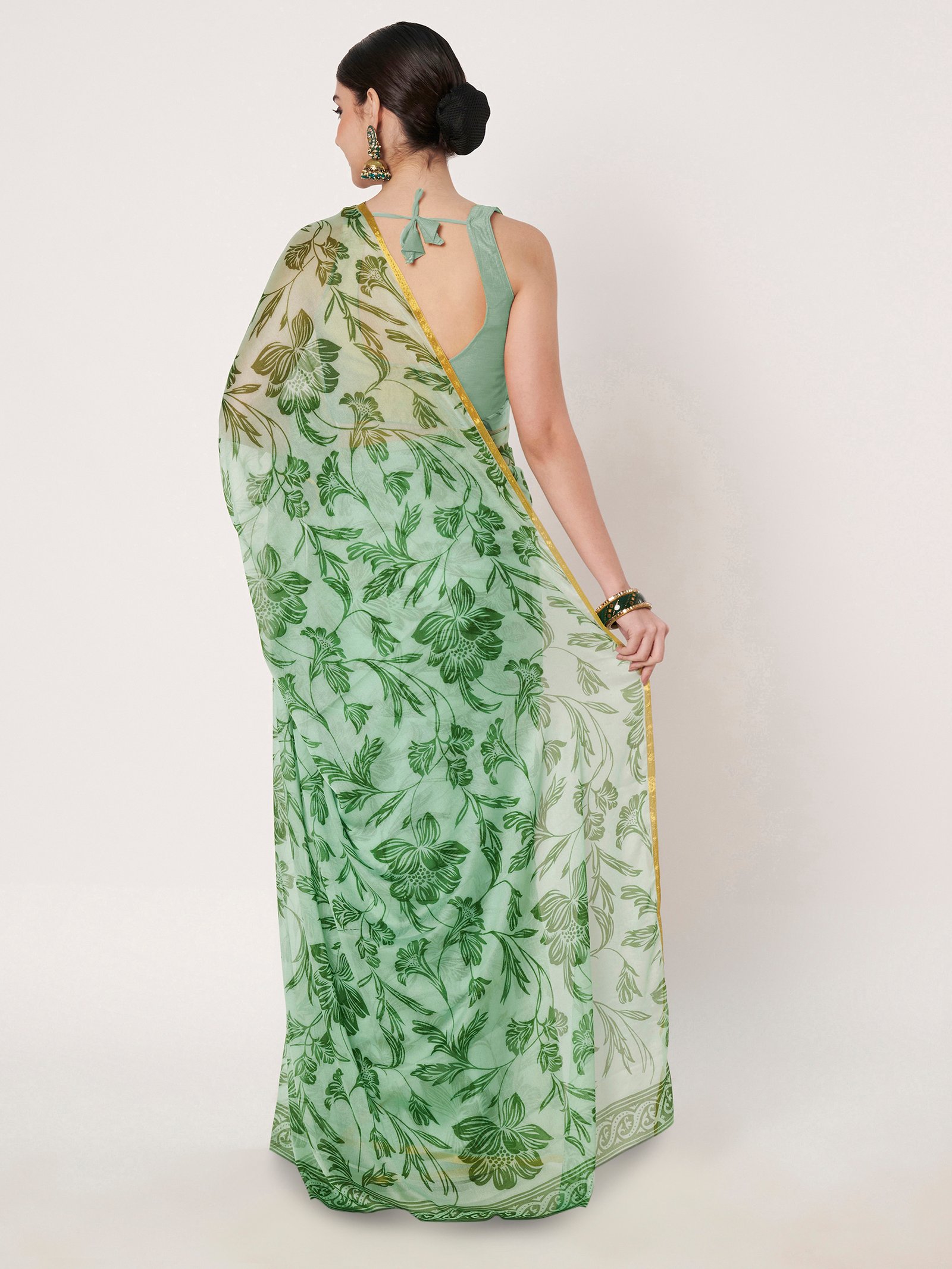 The rich green shade symbolizes freshness and elegance, making this saree ideal for weddings, festivals, daytime functions, parties, and ethnic gatherings. Designed for women who appreciate classic beauty with a modern touch, this saree ensures comfort, confidence, and effortless style.