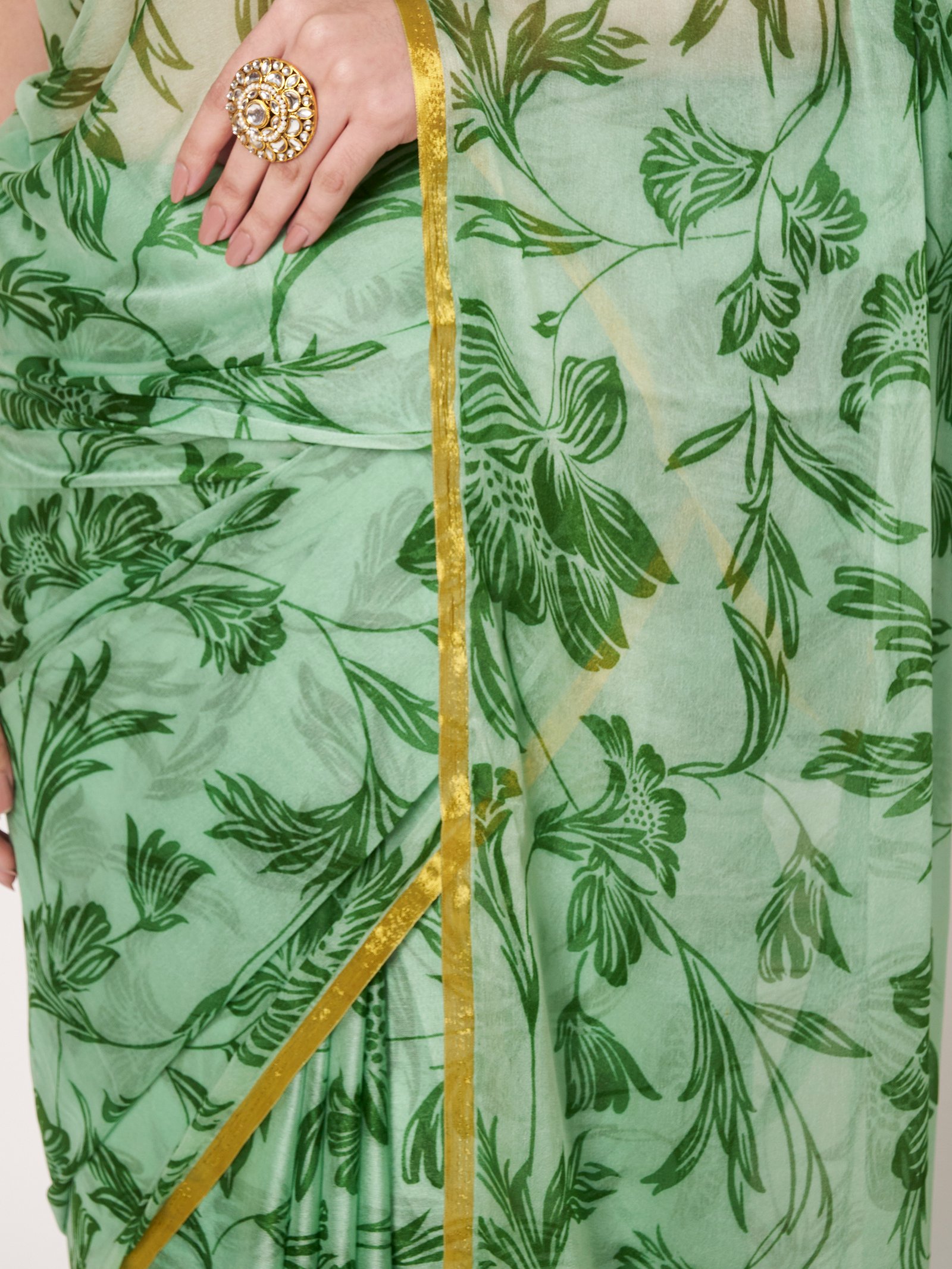 Pair it with gold or pearl jewelry and heels to complete a graceful ethnic look that stands out on every occasion.
